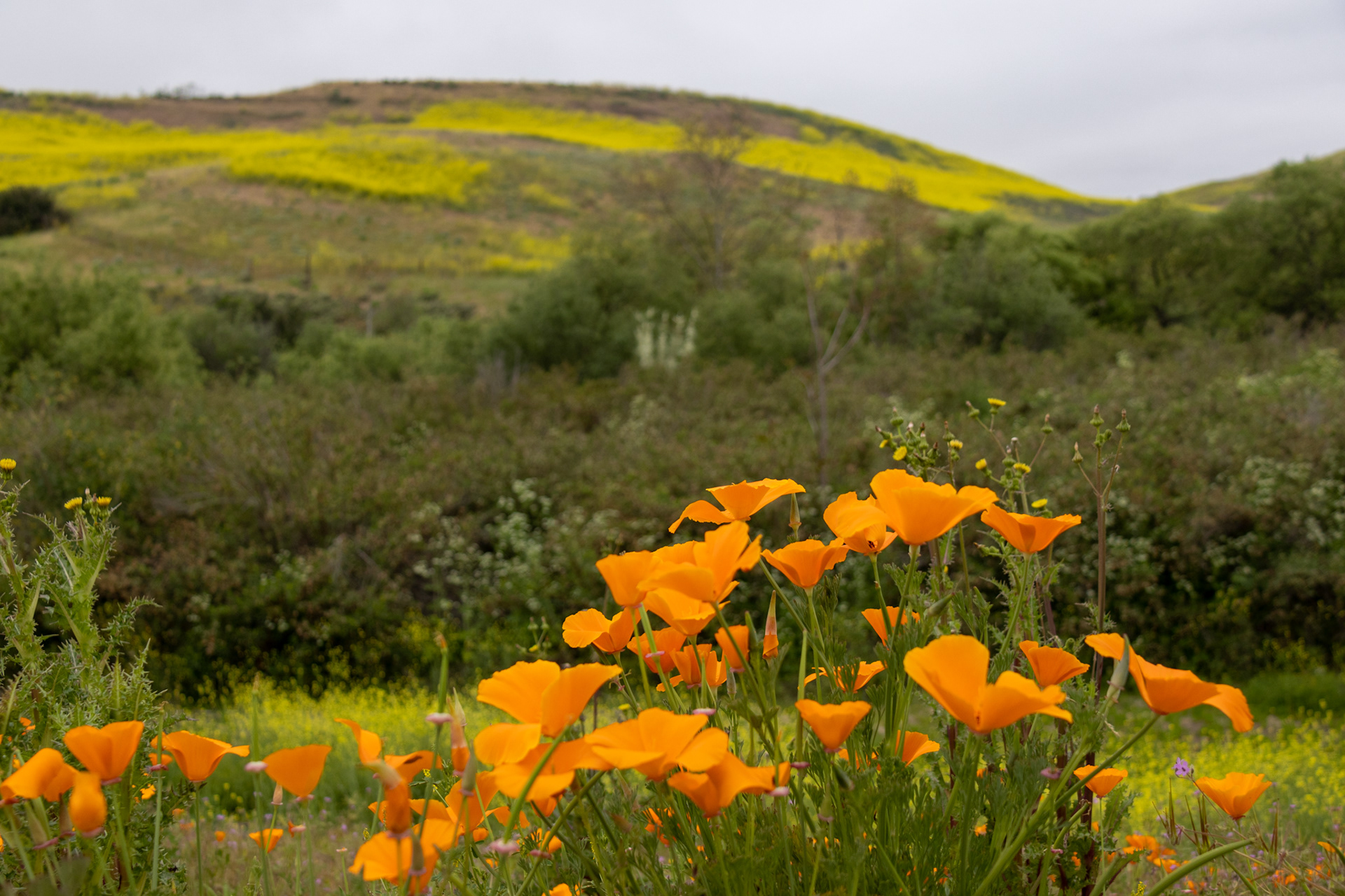 This year we are experiencing a super bloom here in Southern California. The poppies are blooming as well as other wild flowers, making the landscape very colorful.